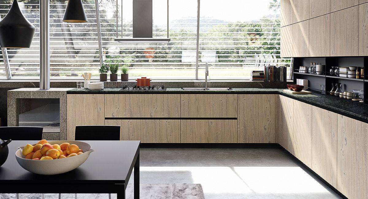Le matériau principal dans une cuisine moderne est le bois. Grâce à son aspect naturel, il apporte de l’élégance et permet d’avoir le style traditionnel présent dans ce type de cuisine. De plus, il s’associe très bien avec de nombreux matériaux. Ainsi, pour apporter de la modernité, le marbre, le béton ciré, le stratifié, la céramique, le verre, le granit, le dekton sont ajoutés au bois. Ils peuvent être neutres ou nervurés pour apporter plus de caractère à votre cuisine.